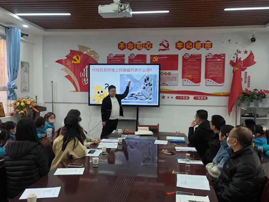 随后,刘义老师以“秦岭传统民居的建筑智慧与美学——以关中民俗博物院为例”为题,为孩子们带来了一场精彩的科普讲座。从厚重的土坯墙到精巧的屋脊瓦当,从院落的空间礼仪到木雕砖刻的吉祥寓意,刘义老师用生动的语言、精美的图片,深入浅出地讲解了秦岭地区,特别是关中传统民居的布局特点、结构工艺、装饰艺术及其背后蕴含的深厚文化内涵与生活哲学。